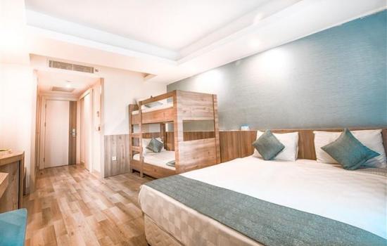 Вкупен број на соби 440 во два блока. Стандардни соби (22m²; една спална соба со француски кревет + софа , една бања, макс.2 + 1лице), Стандардни соби со кревети на спрат (26м², една спална соба со француски кревет + кревет на спрат за деца, една бања, макс.2 + 2лица), Фамилијарни соби со кревети на спрат (32м ; две спални соби со врата помеѓу, во една спална соба е француски кревет во друга соба кревет на спрат + дополнителен кревет, една бања, макс.3 + 2лица), Swim up соби(26м², една спална соба , една бања, терасата е директно поврзана со базенот, макс.2 + 1лице), Garden Block стандардните соби се исти како стандардни соби во главниот блок, сместени во Б блок и само поглед на копно), Love suit (22м², Една спална соба со француски кревет, една бања, голема тераса со џакузи, директен поглед кон море и базен, макс.2лице). Сите соби се со сопствено купатило со туш кабина, фен, клима уред , телефон, мини бар (вода, минерална вода, безалкохолни пијалоци се дополнуваат при пристигнување), електричен бокал, чај и кафе, сеф, кутија, бањарка, WI- FI Интернет (мала брзина), сателитски ТВ и музички канали, балкон.