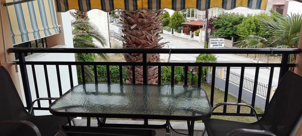 Апартманот располага со две простории. Првата просторија е кујната која е комплетно опремена со кујнски инвентар, ел.шпорет без рерна, аспиратор, фрижидер и има 1 поединечен кревет. Во втората просторија има 2 поединечни кревети, плакар за алишта, тв, клима и излегува на тераса на која има маса со столици и тенда, со поглед во убавата градина. Апартманот располага со стандардно купатило и вц.