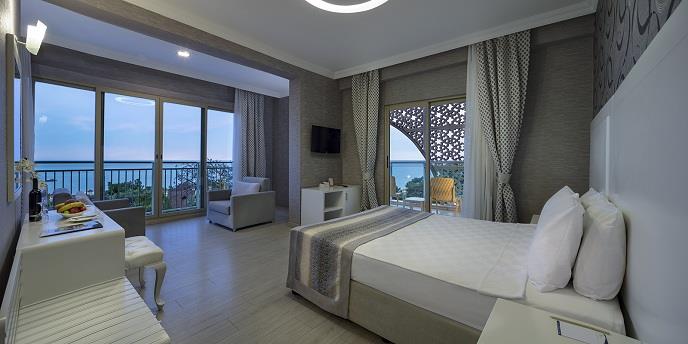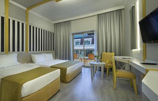 Вкупен број на соби 326. Стандардни соби (28м²; 2 + 1 лице, Ако има 2 + 2 лица имаат кревети на спрат), Големи соби (38м², една спална соба, едно купатило, макс. 2 + 2 лица). Сите соби се со сопствено купатило со туш, фен за коса, сплит клима-систем, под со тепих, телефон, мини бар (со доплата), сеф (со доплата), сателитска ТВ и музички канали.