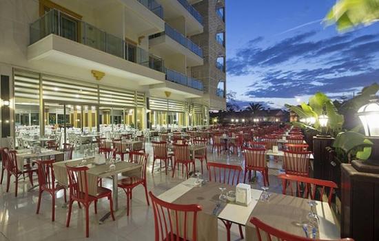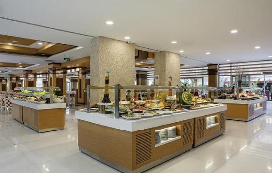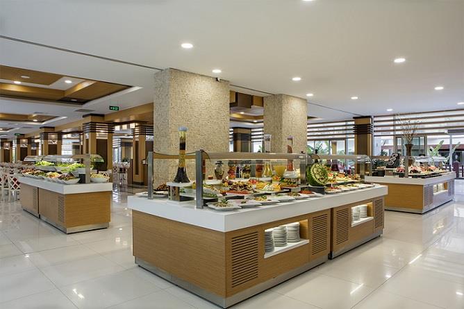 All inclusive – шведска маса за појадок, доцен појадок, ручек, попладневна ужина, чај, кафе, вечера, доцна ужина. Локални алкохолни и безалкохолни пијалоци од 10.00 до 24.00 часот се бесплатни, сладолед за време на одредени часови, бар на плажа отворен од 10.00 – 18.00 часот. Не е вклучено: Сите увезени пијалоци, специјални вина, флаширани пијалоци, свежи овошни сокови, сите пијалоци после 24.00 часот, пијалоци во диско клуб, услуга во соба.