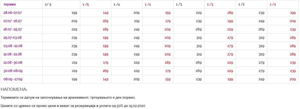 - Наведените цени од табелата се однесуваат за тргнување од Скопје.